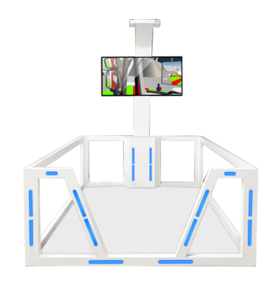1、包含顯示屏幕、主機(jī)、頭戴設(shè)備、行走平臺、護(hù)欄等。