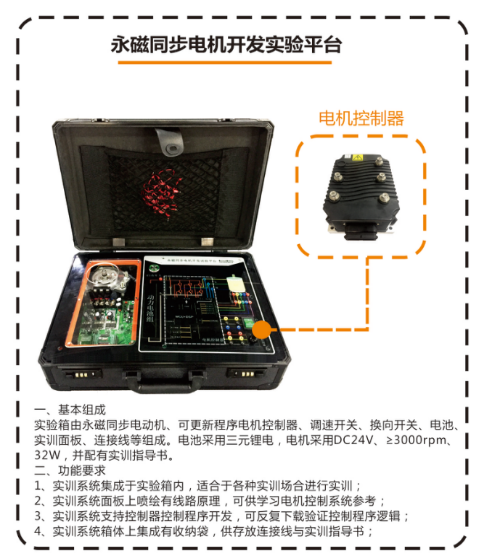一、產品功能: 基于純電動汽車永磁電機控制系統,采用永磁直流電機、電機驅動器、智能工況模擬系統、動力電池系統、整車控制器系統、組合儀表、系統工作參數顯...