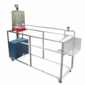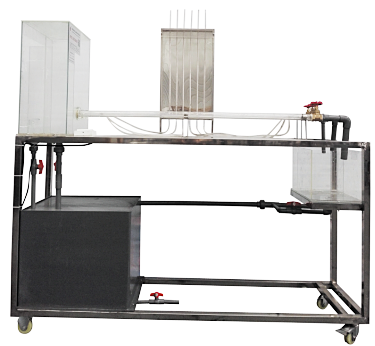 一、實驗目的: 1、演示明渠非均勻流中水躍,水面曲線等多種水力現象, 2、可進行部分定量測定實驗。 二、主要配置: 實驗水槽、柵板、寬頂堰、薄型堰、實驗用斷面...