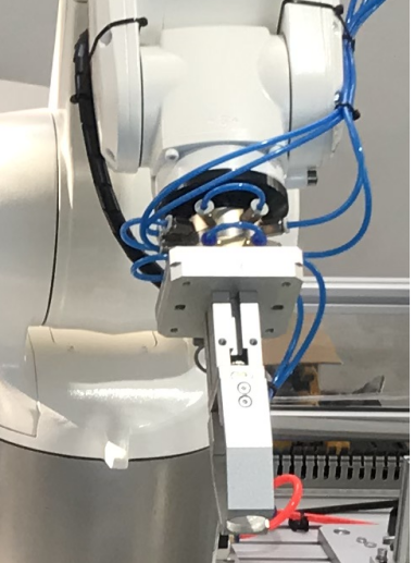 5、工業機器人末端安裝電磁吸盤,可匹配多種夾具。同時至少配備4種工裝夾具,夾具有專門的工具架安放,每個夾具的負重至少在3kg以上。按照實訓項目的要求可分別配合工業機器人完成物料夾取、軌跡模擬、寫字繪圖等工作。