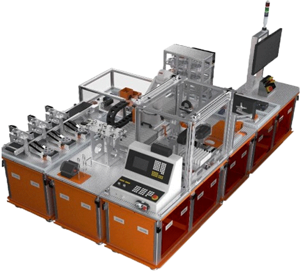 智能制造技術應用一體化學習工作站由執行單元、工具單元、倉儲單元、加工單元、打磨單元、檢測單元、分揀單元、總控單元及軟件組成。