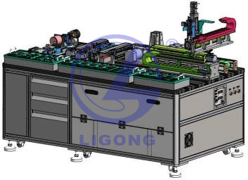 機架結構采用鋁型材搭建,配地腳滾輪,警示燈,按鈕 控制盒,電氣元件安裝板采用可抽拉結構。尺寸:(長寬高)1850×1050×850mm。