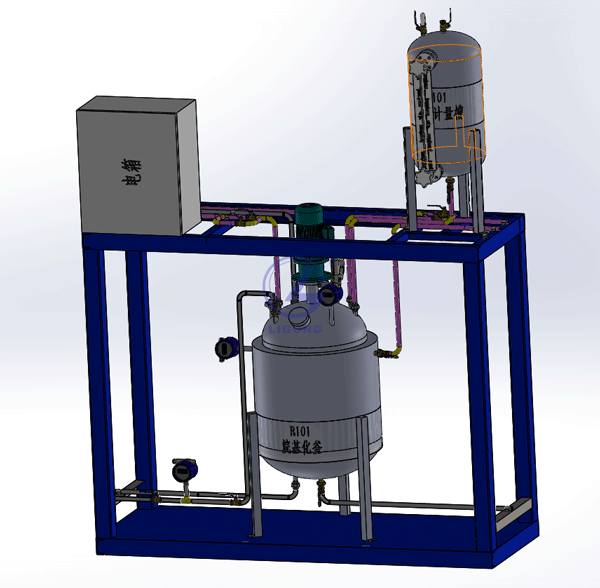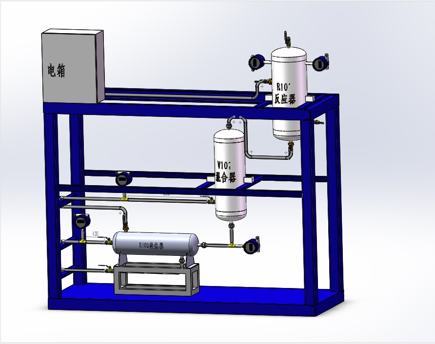 一、裝置特色 整套裝置由鋼制安裝框架、反應器、冷凝器、輸送泵、仿真儀表、就地計算機操作臺、就地智能儀表控制上位監控軟件、外置配套設備等組成,工藝路線簡...