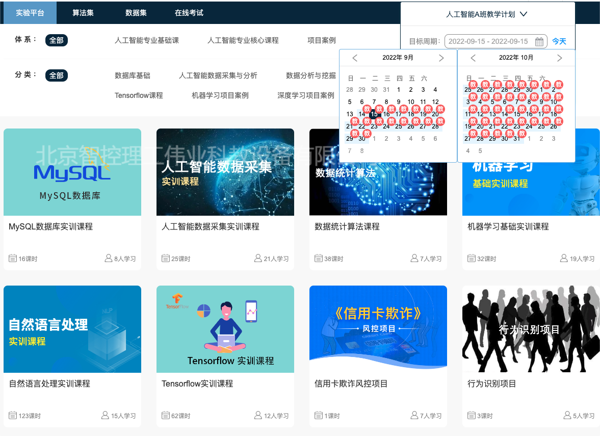 人工智能實訓課程資源共計200多個,資源涵蓋了操作系統類、數據庫類、編程語言類、統計分析類、機器學習類、神經網絡與深度學習類、自然語言處理類、機器視覺類、智能硬件類課程等諸多方面課程,課程類型包括基礎實訓、關鍵技術掌握、應用創新等,是一個綜合性的學習研究平臺;平臺配合專用的資源監控系統、課程監控系統,可實時的監控整個平臺的硬件資源負載以及學生學習的狀態,可幫助教師合理的安排課程及對應資源。