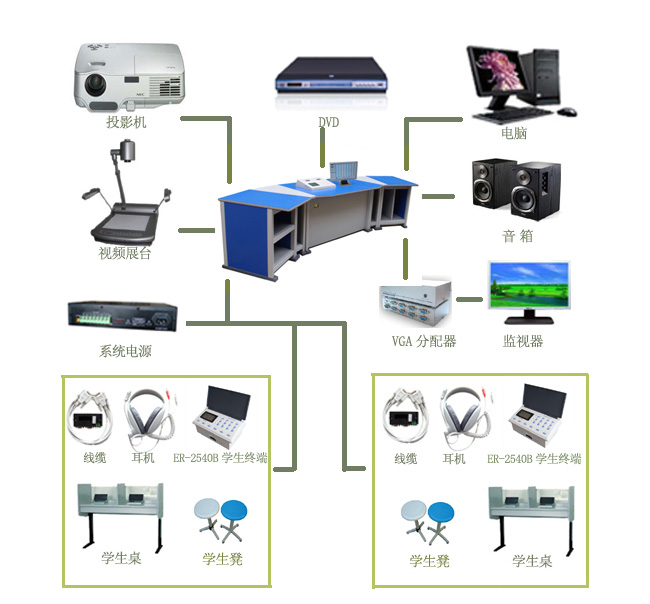 ○ 可通過按鍵控制主控系統,能方便直觀地用鼠標點擊;輸出兩路音源供學生選擇;中文菜單提示操作; 可對周邊音視頻設備進行控制;5.1寸點陣液晶顯示狀態,背光可調。